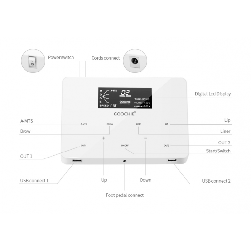 Goochie M8-4 sminktetoválógép szett digitális vezérlővel, pedállal